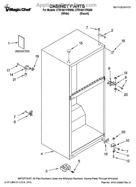 Repair manual for refrigerators and freezers made by Whirlpool. Covered brands include Whirlpool, Sears, Kenmore, Kitchen Aid, Roper, and Estate. Easy to follow photographs and step-by-step repair procedures.