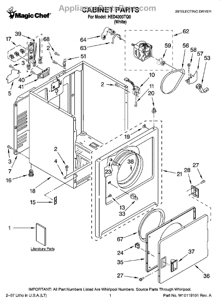 Note: If your original door seal was rubber, please note that the factory has changed this to a fiberglass seal. The factory also recommends adhesive part# WPY055980 to install.