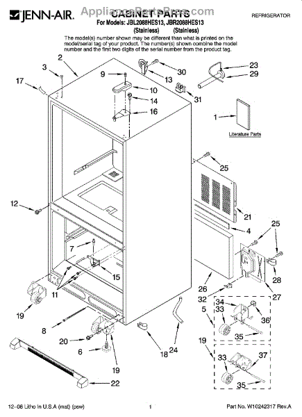 Parts for Maytag JBR2088HES13: 01 - Cabinet Parts