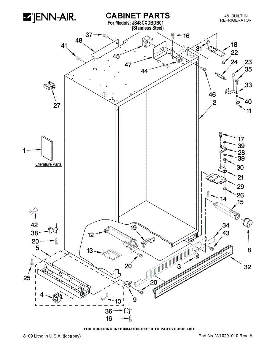 Support base bracket for side-by-side refrigerators. Mounts on the front left side to provide structural support. Replace if cracked or broken.