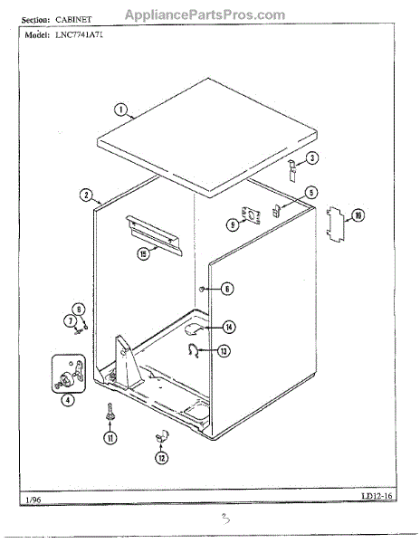 Parts for Maytag LNC7741A71: Cabinet Parts