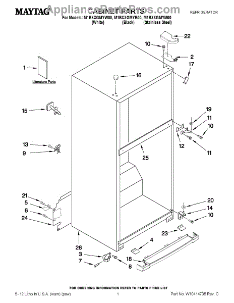 Parts for Maytag M1BXXGMYW00: 01 - Cabinet Parts