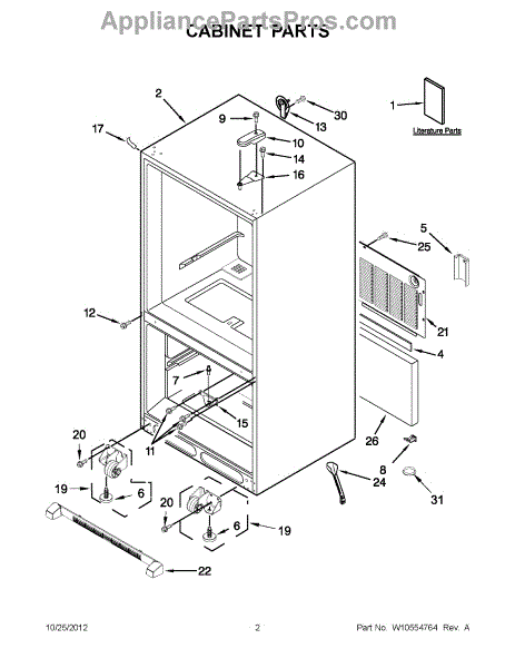The Leveling Leg is an OEM replacement part for Whirlpool refrigerators. It is one of four legs situated internally at the base corners for proper tilt positioning. It raises or lowers each leg independently to stabilize units on uneven kitchen floors. Causes of replacement consist of wear from continual torque required during positioning processes. Thread damage or corrosion buildup attributable to floor locations over extended use necessitates periodic renewal as well. Symptoms involve: