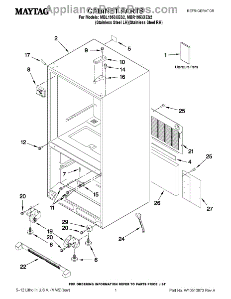The Leveling Leg is an OEM replacement part for Whirlpool refrigerators. It is one of four legs situated internally at the base corners for proper tilt positioning. It raises or lowers each leg independently to stabilize units on uneven kitchen floors. Causes of replacement consist of wear from continual torque required during positioning processes. Thread damage or corrosion buildup attributable to floor locations over extended use necessitates periodic renewal as well. Symptoms involve:
