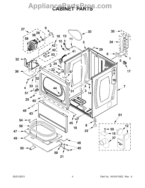 The Belt is an OEM replacement part for Whirlpool clothes dryers. This belt transfers power from the motor to the drum, causing it to spin and gently tumble dry clothes. Causes of belt failure typically relate to normal wear and tear over thousands of dryer cycles. As belts constantly rotate under tension, cracks and looseness can develop which affects their ability to grip smoothly. Physical damage from improper installation is another potential cause. Symptoms of a worn or broken belt include: