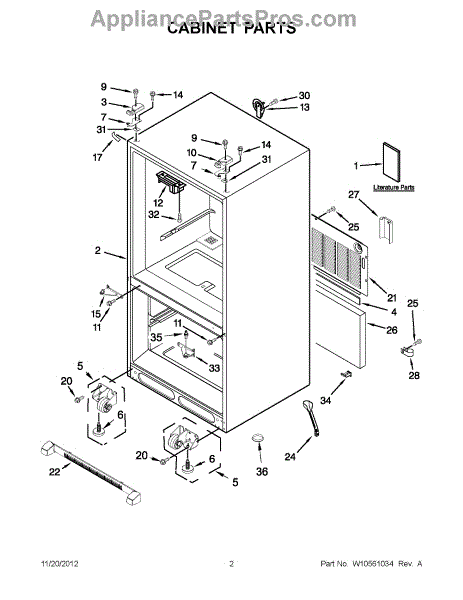 The Roller Assembly is an OEM part for Whirlpool refrigerators. It contains heavy-duty ball bearing rollers located along the bottom front-right cabinet. Repeatedly maneuvering fully-loaded refrigerators can cause cabinet rollers to crack or bearing races to deteriorate over extended use. Potential failure causes include structural cracks from strong impacts or bearing lubrication washing away from repeated wet cleaning. Symptoms of faulty cabinet rollers include: