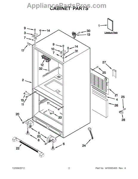 The Leveling Leg is an OEM replacement part for Whirlpool refrigerators. It is one of four legs situated internally at the base corners for proper tilt positioning. It raises or lowers each leg independently to stabilize units on uneven kitchen floors. Causes of replacement consist of wear from continual torque required during positioning processes. Thread damage or corrosion buildup attributable to floor locations over extended use necessitates periodic renewal as well. Symptoms involve: