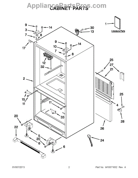 The Leveling Leg is an OEM replacement part for Whirlpool refrigerators. It is one of four legs situated internally at the base corners for proper tilt positioning. It raises or lowers each leg independently to stabilize units on uneven kitchen floors. Causes of replacement consist of wear from continual torque required during positioning processes. Thread damage or corrosion buildup attributable to floor locations over extended use necessitates periodic renewal as well. Symptoms involve:
