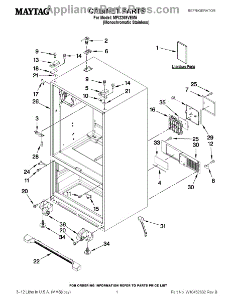 Parts for Maytag MFI2269VEM5: 01 - Cabinet Parts