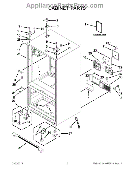 The Leveling Leg is an OEM replacement part for Whirlpool refrigerators. It is one of four legs situated internally at the base corners for proper tilt positioning. It raises or lowers each leg independently to stabilize units on uneven kitchen floors. Causes of replacement consist of wear from continual torque required during positioning processes. Thread damage or corrosion buildup attributable to floor locations over extended use necessitates periodic renewal as well. Symptoms involve: