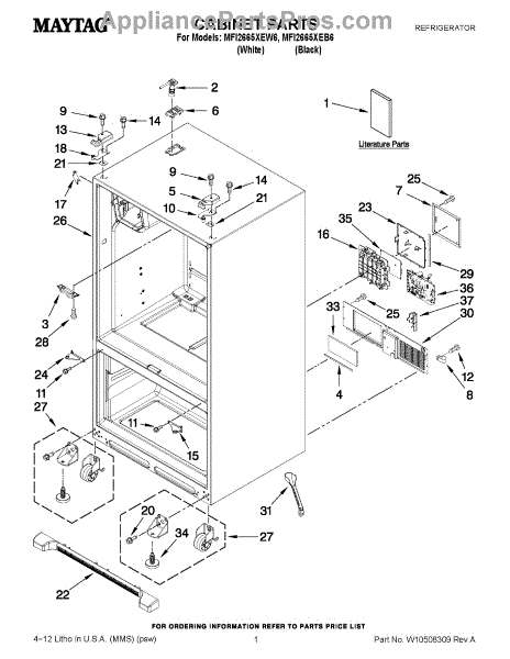 Parts for Maytag MFI2665XEW6: 01 - Cabinet Parts