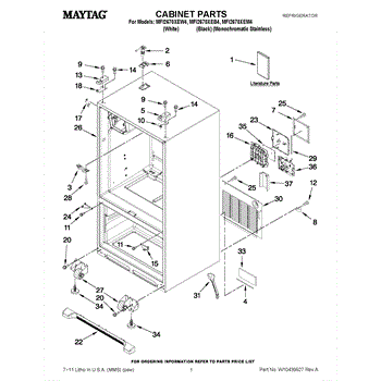 The Roller Assembly is an OEM part for Whirlpool refrigerators. It contains heavy-duty ball bearing rollers located along the bottom front-right cabinet. Repeatedly maneuvering fully-loaded refrigerators can cause cabinet rollers to crack or bearing races to deteriorate over extended use. Potential failure causes include structural cracks from strong impacts or bearing lubrication washing away from repeated wet cleaning. Symptoms of faulty cabinet rollers include: