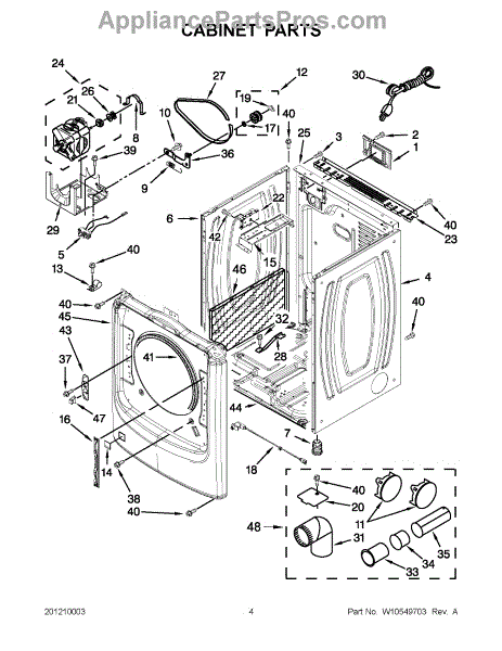 This exhaust pipe routes exhaust air from the appliance to the home vent, restoring proper airflow for safe, efficient operation. Use when the original pipe is cracked, bent, or leaking. What it does: