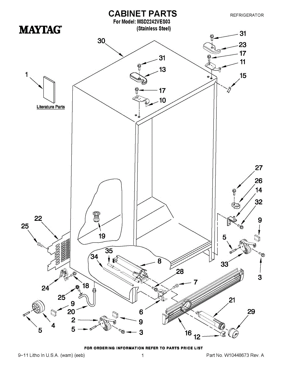 Cabinet roller axle supports refrigerator wheels for smooth movement. Replace if rollers wobble or fridge is hard to move. Verify fit with your model.