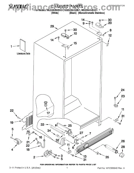 Parts for Maytag MSD2559XEW01: 01 - Cabinet Parts