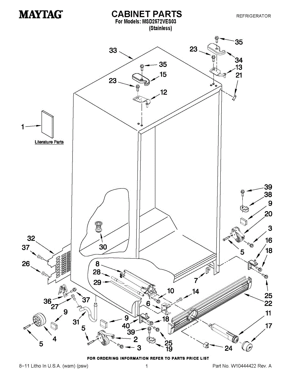 Cabinet roller axle supports refrigerator wheels for smooth movement. Replace if rollers wobble or fridge is hard to move. Verify fit with your model.