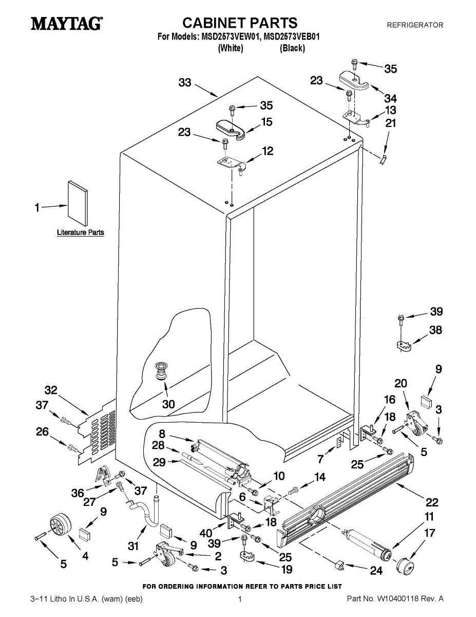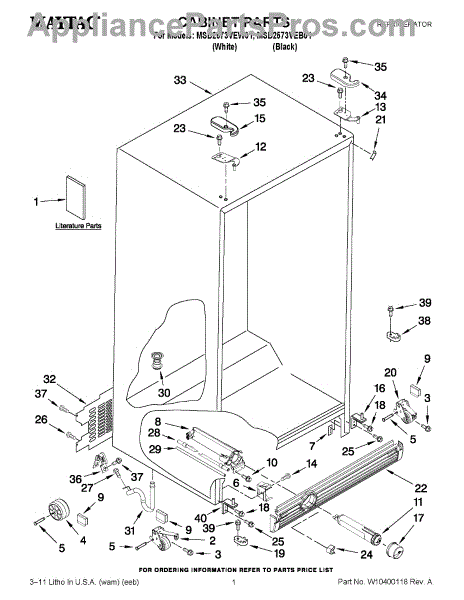 Cabinet roller axle supports refrigerator wheels for smooth movement. Replace if rollers wobble or fridge is hard to move. Verify fit with your model.