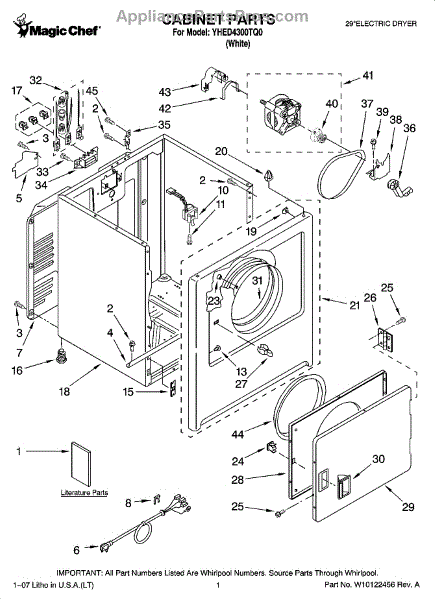 Note: If your original door seal was rubber, please note that the factory has changed this to a fiberglass seal. The factory also recommends adhesive part# WPY055980 to install.