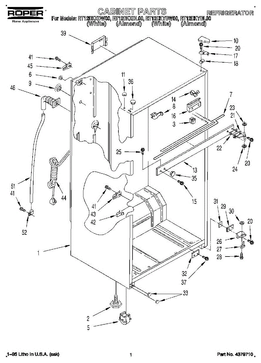 Parts for Roper RT12DKXDW00: 01 - Cabinet Parts