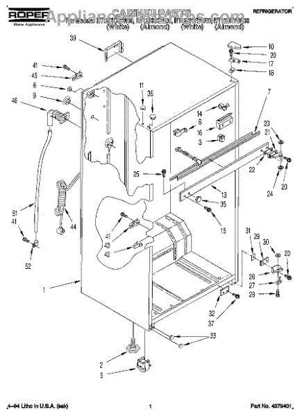 Parts for Roper RT12DKYBW00: 01 - Cabinet Parts