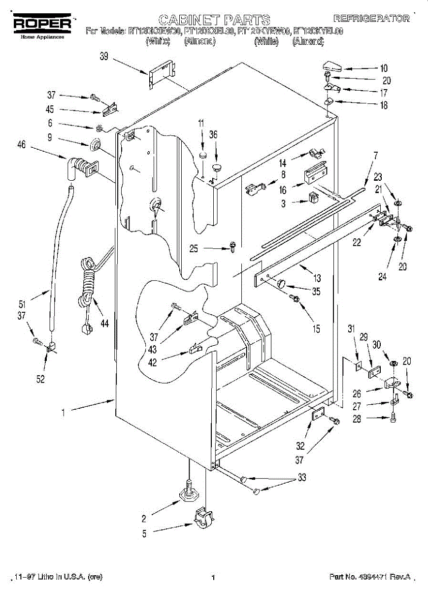 Drain tube for refrigerators and freezers. Routes defrost water from the evaporator to the drain pan. Replace if cracked, clogged, or disconnected.