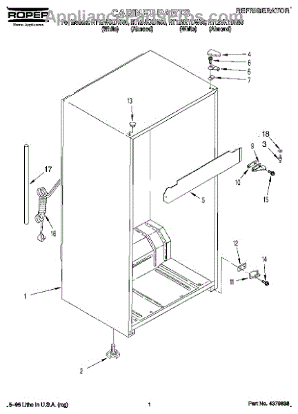 Parts for Roper RT12VKXDW00: 01 - Cabinet Parts