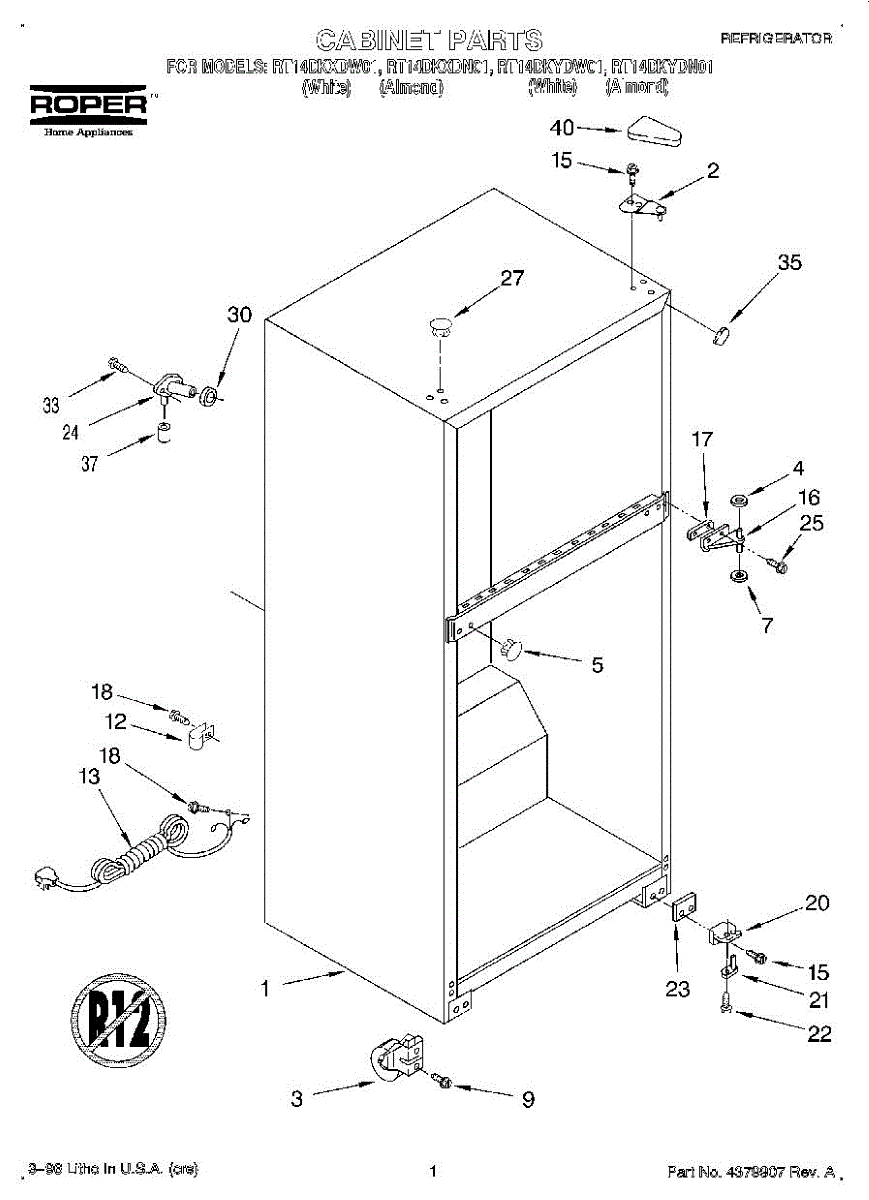 Parts for Roper RT14DKXDN01: 01 - Cabinet Parts
