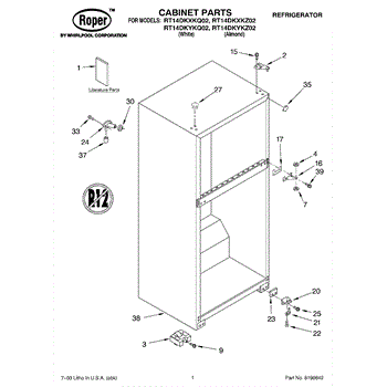 Parts for Roper RT14DKXKQ02: 01 - Cabinet Parts