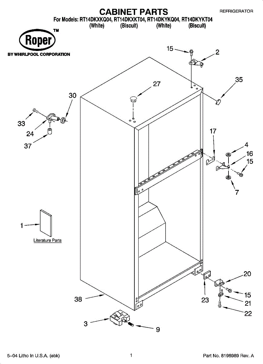 Parts for Roper RT14DKYKQ04: 01 - Cabinet Parts