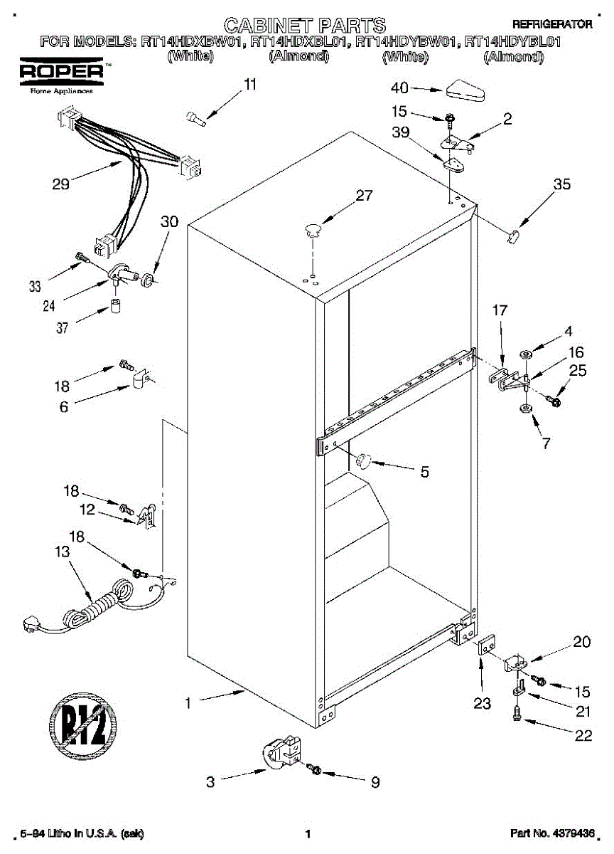 Seals refrigerator door to prevent air leaks and temperature loss. Replace when worn, cracked, or no longer forming a tight seal. Verify fit by model.