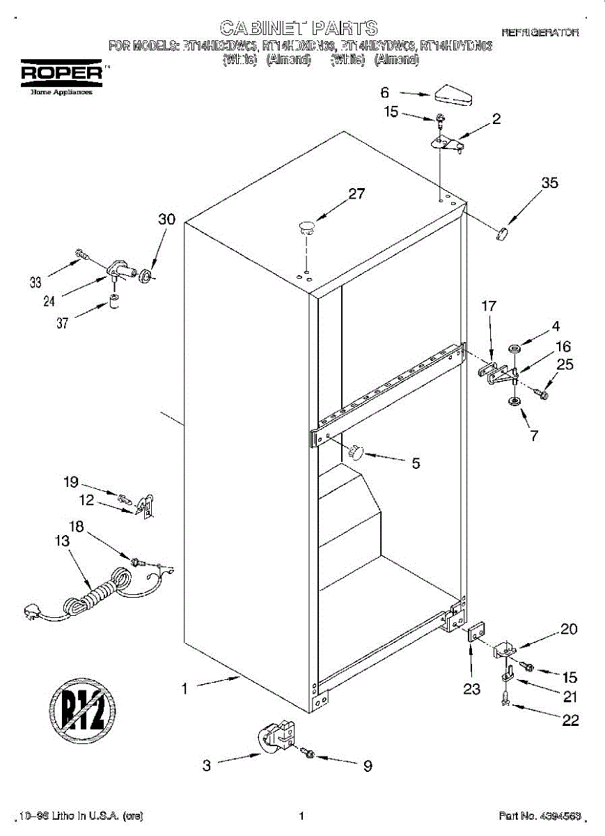 Plastic cap for freezers, ovens, and refrigerators. Replaces cracked, broken, or missing caps. Direct fit component for secure installation.