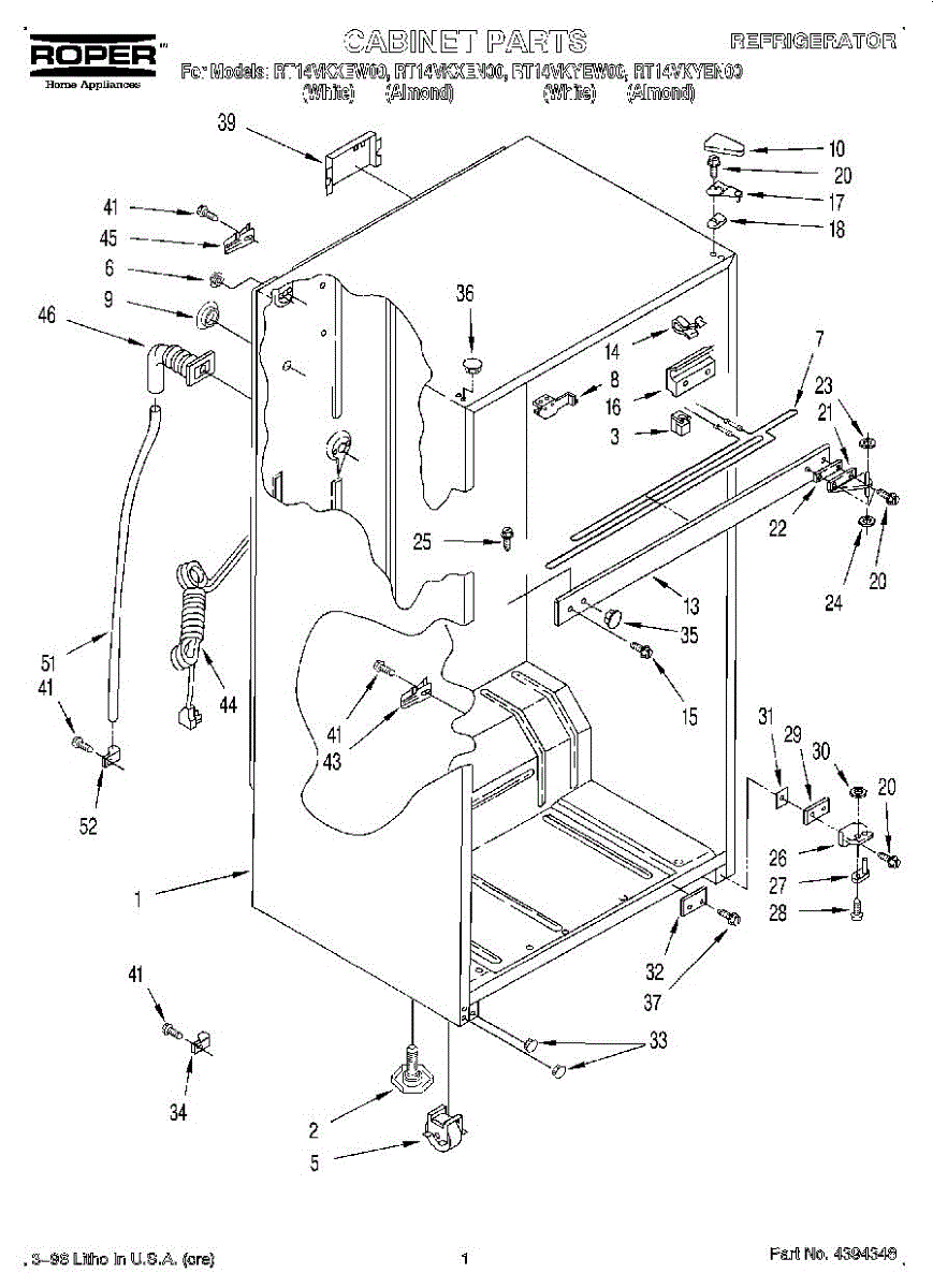 Flat washer used on refrigerator door hinge assembly. Reduces friction and distributes load for smooth door operation.