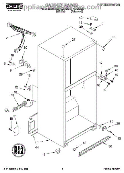 Parts for Roper RT16DKXBW01: 01 - Cabinet Parts