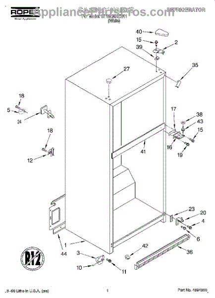 Parts for Roper RT16LMXEW01: 01 - Cabinet Parts