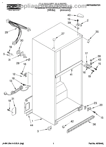 Parts for Roper RT16VKXBL00: 01 - Cabinet Parts
