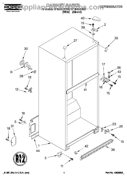 Parts for Roper RT18AKXDN03: 01 - Cabinet Parts