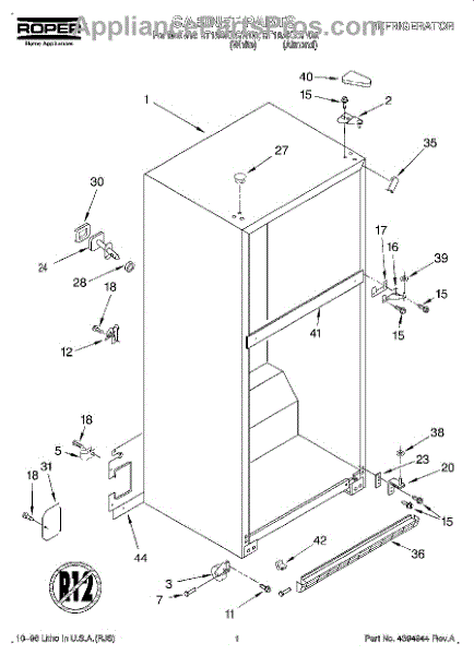 The Hinge Washer is an OEM replacement part for Whirlpool refrigerators. This small washer plays a supports the refrigerator door hinge assembly. Center hinge plastic washer. Causes of a bad hinge washer are generally normal wear and tear from extensive use. As the washer absorbs pressure each time the door is opened or closed, it can gradually deteriorate or crack. Physical damage is also possible if the door is accidentally struck or slammed. Symptoms of a worn or damaged hinge washer include: