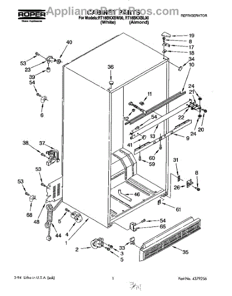 Parts for Roper RT18BKXBL00: 01 - Cabinet Parts