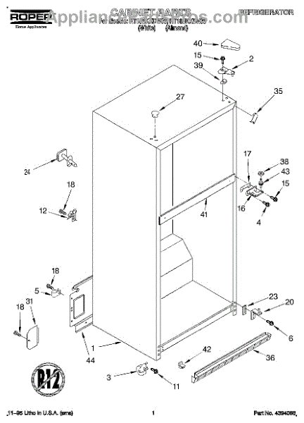 Parts for Roper RT18BKXDW03: 01 - Cabinet Parts