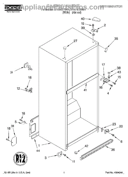 Parts for Roper RT18BKXEW01: 01 - Cabinet Parts