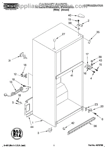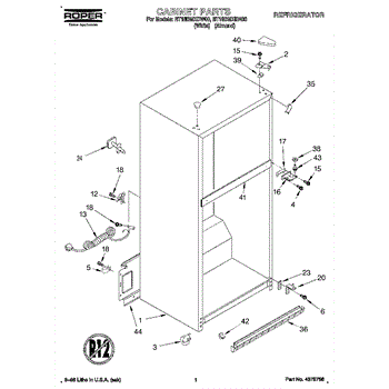 Parts for Roper RT18BMXDW00: 01 - Cabinet Parts