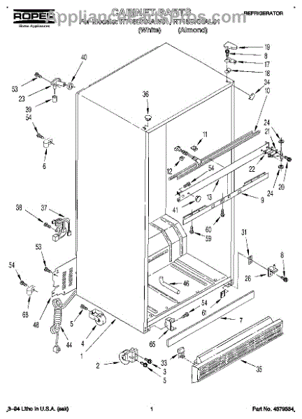 Parts for Roper RT18DKXAW01: 01 - Cabinet Parts