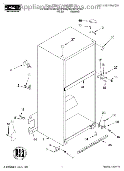 Cabinet roller axle supports refrigerator wheels for smooth movement. Replace if rollers wobble or fridge is hard to move. Verify fit with your model.