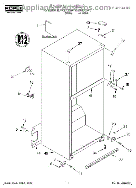 Parts for Roper RT18DKXHN00: 01 - Cabinet, Literature Parts