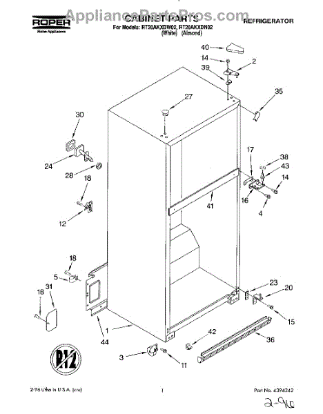 Parts for Roper RT20AKXDW02: 01 - Cabinet Parts