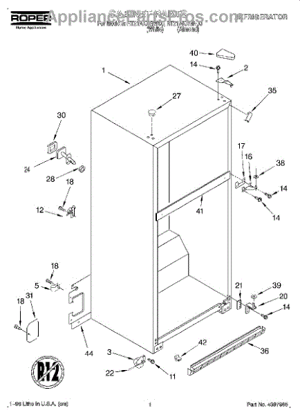 The Hinge Washer is an OEM replacement part for Whirlpool refrigerators. This small washer plays a supports the refrigerator door hinge assembly. Center hinge plastic washer. Causes of a bad hinge washer are generally normal wear and tear from extensive use. As the washer absorbs pressure each time the door is opened or closed, it can gradually deteriorate or crack. Physical damage is also possible if the door is accidentally struck or slammed. Symptoms of a worn or damaged hinge washer include: