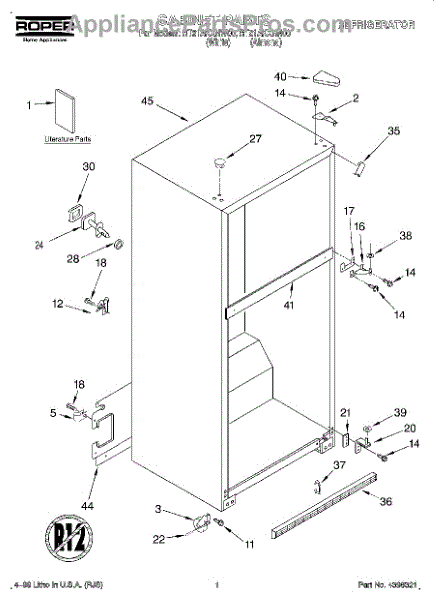 The Hinge Washer is an OEM replacement part for Whirlpool refrigerators. This small washer plays a supports the refrigerator door hinge assembly. Center hinge plastic washer. Causes of a bad hinge washer are generally normal wear and tear from extensive use. As the washer absorbs pressure each time the door is opened or closed, it can gradually deteriorate or crack. Physical damage is also possible if the door is accidentally struck or slammed. Symptoms of a worn or damaged hinge washer include: