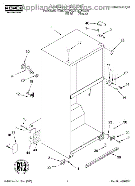 The Hinge Washer is an OEM replacement part for Whirlpool refrigerators. This small washer plays a supports the refrigerator door hinge assembly. Center hinge plastic washer. Causes of a bad hinge washer are generally normal wear and tear from extensive use. As the washer absorbs pressure each time the door is opened or closed, it can gradually deteriorate or crack. Physical damage is also possible if the door is accidentally struck or slammed. Symptoms of a worn or damaged hinge washer include:
