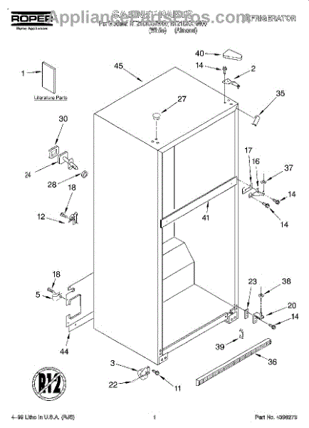 Parts for Roper RT21DKXHW00: 01 - Cabinet, Literature Parts