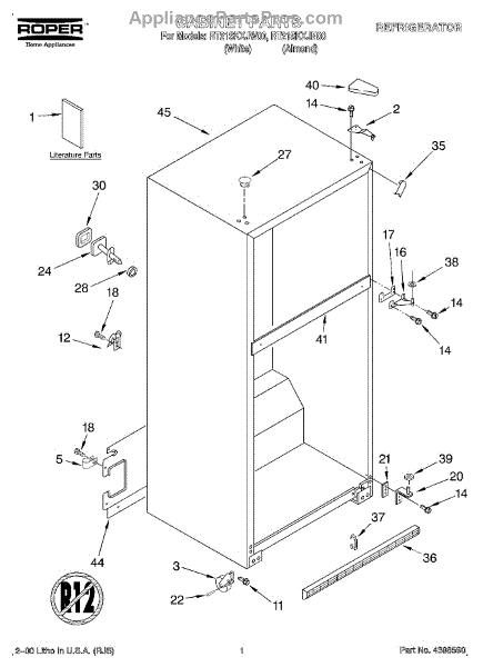 The Hinge Washer is an OEM replacement part for Whirlpool refrigerators. This small washer plays a supports the refrigerator door hinge assembly. Center hinge plastic washer. Causes of a bad hinge washer are generally normal wear and tear from extensive use. As the washer absorbs pressure each time the door is opened or closed, it can gradually deteriorate or crack. Physical damage is also possible if the door is accidentally struck or slammed. Symptoms of a worn or damaged hinge washer include: